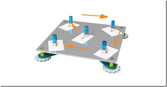 - – Ajustez chacune des quatre molettes sous le plateau jusqu’à ce que le morceau de papier glisse, avec juste un petit peu de traînée, dans tous les endroits sur la plaque de construction.