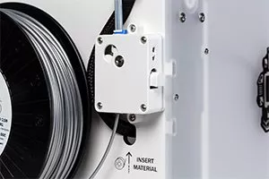 Connectez votre imprimante à votre ordinateur (câble USB, carte SD, WiFi), placez votre bobine de matériau sur le support de bobine, puis insérez le filament 3D dans le chargeur et poussez jusqu'à ce qu'il apparaisse dans le tube Bowden. Attendez que le matériau soit chargé dans la tête d’impression ou extrudeuse.